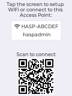 At first boot, when no Wi-Fi setup is found, the device will create an initial Access Point for configuring the device. If the touchscreen is properly connected it will display a QR code, along with a temporary SSID and password, to connect to the device.
